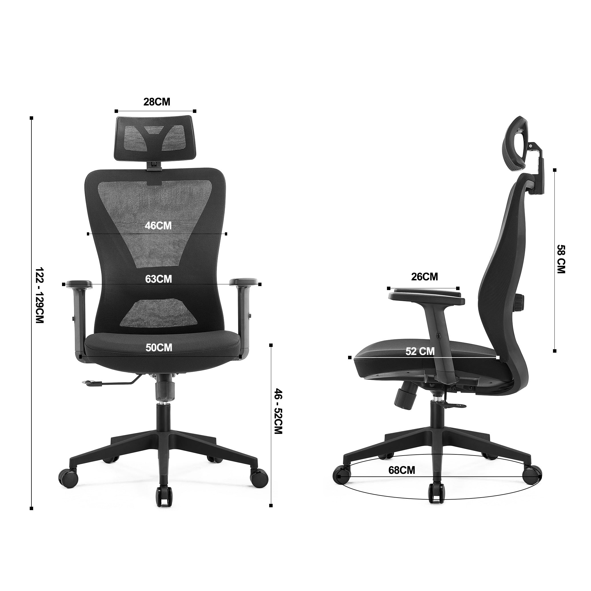 - High back ergonomic mesh office chair with 2D headrest